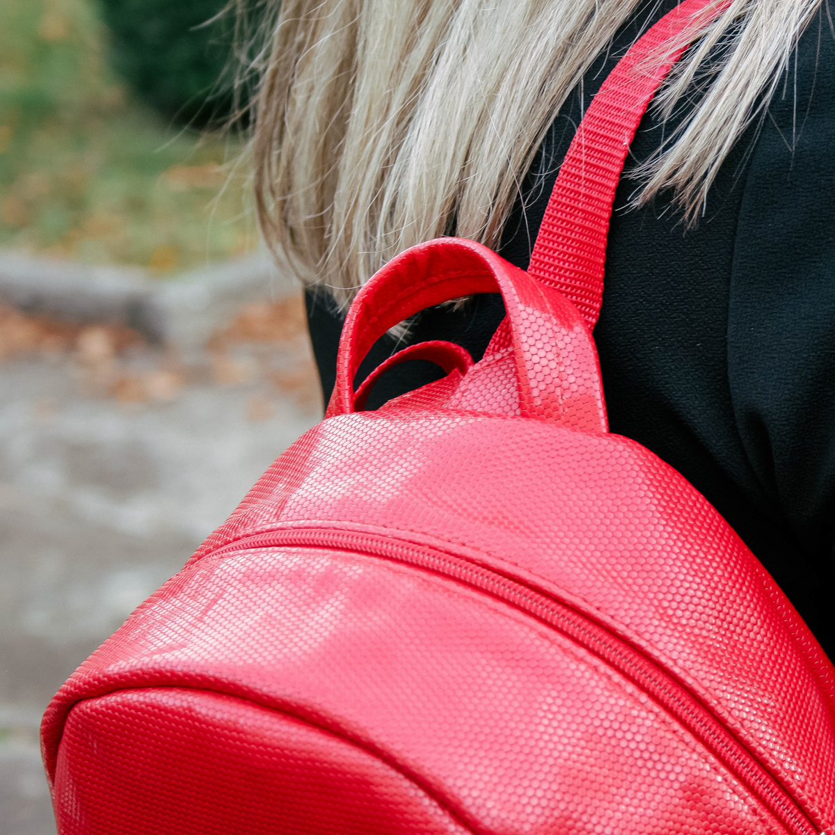 Рюкзак з натуральної лакованої шкіри з тисненням “Сота”.